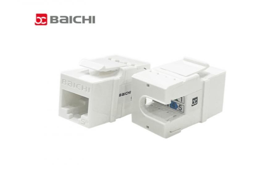 BaICHI超五类UTP信息插座采用独特的电路补偿技术设计, 可保证信息插座接触点可靠的链接和高于5E类标准的性能, 插座端接防尘帽是该产品的独特之处,他采用了一种简单的 快速压入方式安装,并使的IDC端子在极端环境下的正常端 接和插座的正常工作。可安装在配线盘或面板上。小巧的 180度打线插座设计,满足数据中心等高密度布线的应用。